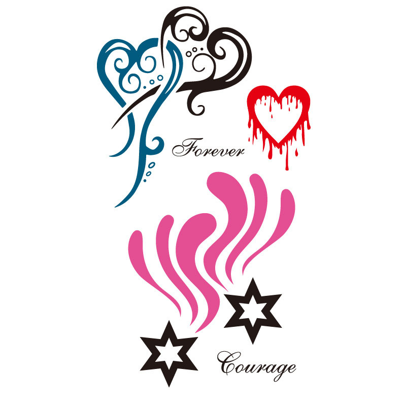 Bold Emotions is een tijdelijk tattoo vel van 10,5 x 6 cm met krachtige symbolen zoals harten, sterren, vlammen en woorden als ‘Forever’ en ‘Courage’. Deze 3 dagen tattoo is perfect voor wie zijn gevoel en kracht op een stijlvolle, opvallende manier wil uiten.
