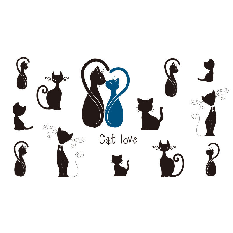 Cat Love Parade is een tijdelijk tattoo vel van 10,5 x 6 cm vol kattenkarakter! Maar liefst vijftien unieke kattensilhouetten vormen samen een speelse verzameling van staart-krullende poses, sierlijke houdingen en grappige uitdrukkingen. In het midden zie je een verliefd kattenkoppel dat met hun staarten een hart vormt — één in het zwart, de ander in een opvallend blauwe tint. Juist dat blauwe detail geeft deze set een verrassende touch, zonder de elegante stijl te doorbreken.