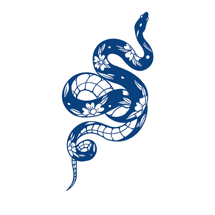 Een sierlijke slang vol bloemen: dit unieke ontwerp straalt kracht én zachtheid uit. Perfect voor wie houdt van mystiek met een vrouwelijke touch. Deze kleine tijdelijke tattoo op een vel van 70 x 120 mm is ideaal voor arm, rug of been en blijft ongeveer 1 tot 2 weken zitten.