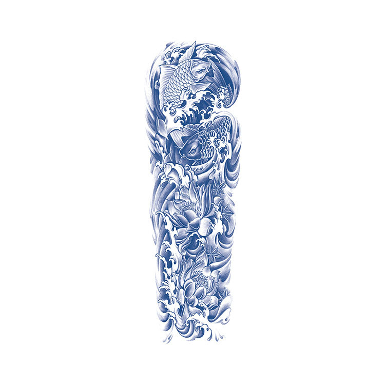 Een schitterende tijdelijke tattoo sleeve met twee sierlijke koi karpers, omringd door bloemen en golven. Het staat symbool voor doorzettingsvermogen, balans en innerlijke groei. Deze 2-weken tattoo is ideaal voor wie houdt van spirituele kracht met een elegante uitstraling. Geschikt voor mannen en vrouwen die op willen vallen met betekenisvolle body art.