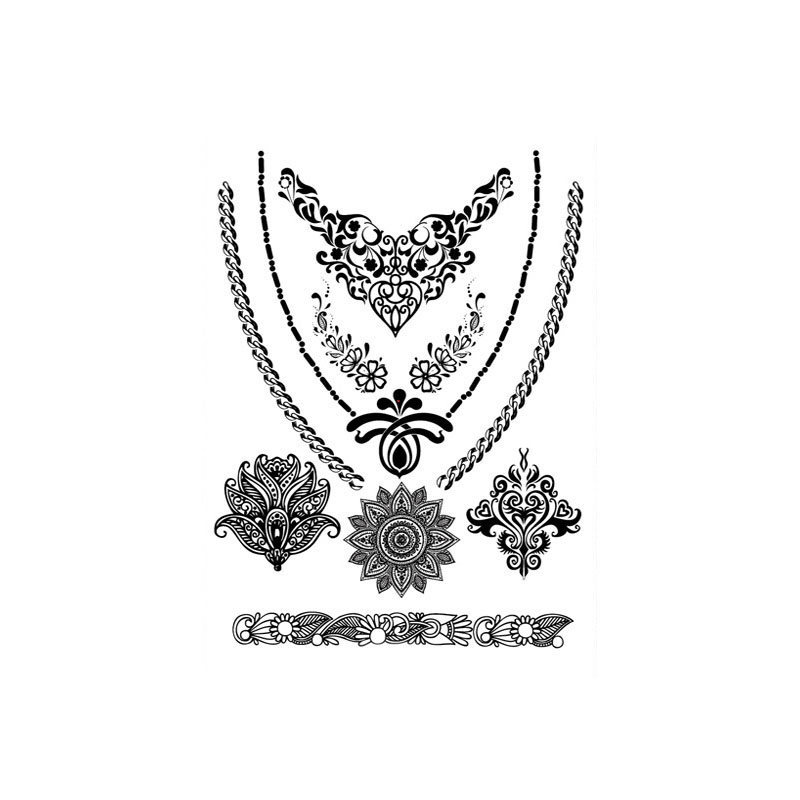 Wat deze tattoo zo speciaal maakt, is de veelzijdigheid: het grote centrale kettingmotief geeft je de mogelijkheid om een echt statement te maken, terwijl de kleinere elementen subtiel en charmant zijn. Je kunt ervoor kiezen om één element te gebruiken voor een minimalistische look, of meerdere te combineren voor een rijk gedecoreerd effect.
