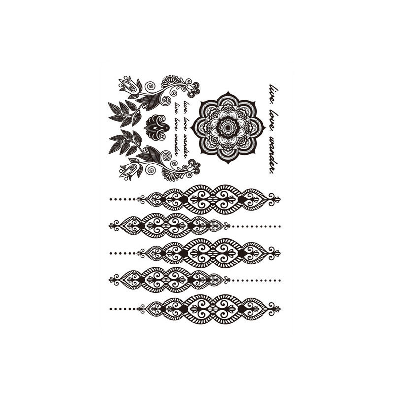 Lace Wonder is een betoverende tijdelijke tattoo die de zachtheid van kant combineert met krachtige symboliek. Op het ruime tattoo vel van 14,8 x 21 cm vind je verfijnde bloemmotieven, sierlijke lijnen, bladerpatronen en de elegante woorden “live, love, wonder” in handgeschreven stijl. Deze tijdelijke tattoo blijft gemiddeld drie dagen mooi op de huid en is ideaal voor feestjes, festivals of gewoon om jezelf een chique look te geven.De kantachtige ontwerpen ogen klassiek, maar passen juist ook verrassend goed bij moderne outfits – of je ze nu draagt op je pols, schouderblad, sleutelbeen of enkel. De combinatie van strakke symmetrie en speelse details maakt deze tattoo zowel ingetogen als uitgesproken, afhankelijk van hoe je hem toepast. Je kunt het vel in zijn geheel gebruiken of de losse onderdelen combineren en verspreid plakken.