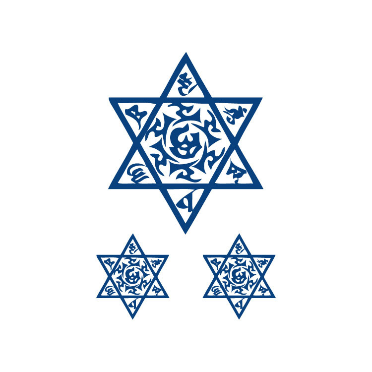 Mystic Star Trio is een bijzonder tattoo vel van 8 x 11 cm met drie geometrisch-symbolische tattoos. Het ontwerp bestaat uit een grotere centrale ster en twee kleinere variaties, allemaal opgebouwd uit strakke lijnen en tribal-achtige vormen. In het hart van elk ontwerp bevindt zich een krachtig, bijna hypnotiserend patroon dat spirituele energie en balans uitstraalt.