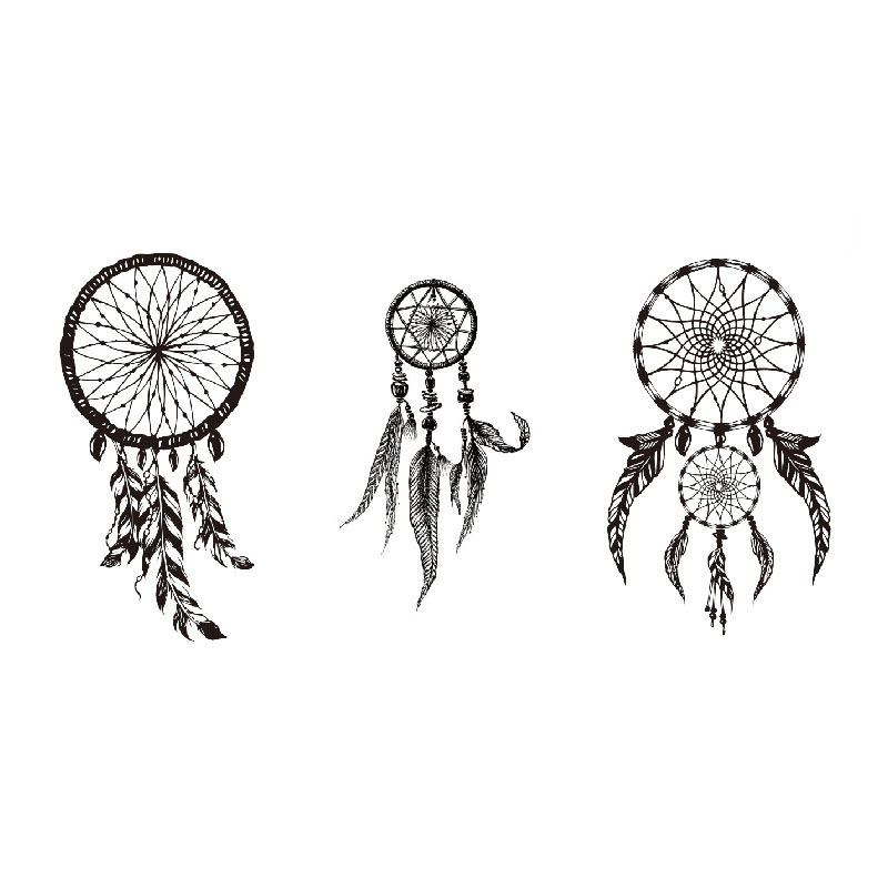 De dromenvanger is een eeuwenoud symbool dat afkomstig is uit de inheemse cultuur van Noord-Amerika. Volgens de traditie vangt hij negatieve dromen in zijn web en laat hij alleen positieve dromen door. In deze tattoos wordt dat verhaal vertaald naar een stijlvol ontwerp dat rust, bescherming en balans uitstraalt.