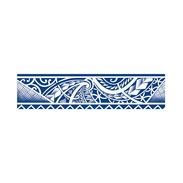 De Sharkwave Band is een tijdelijke tattoo geïnspireerd op traditionele Polynesische motieven, met een moderne en scherpe uitstraling. De tattoo bevat kenmerkende symbolen zoals haaientanden en speervormen, die symbool staan voor kracht, bescherming en uithoudingsvermogen. In combinatie met sierlijke krullen en geometrische lijnen ontstaat er een prachtig visueel spel dat zowel stoer als stijlvol is.