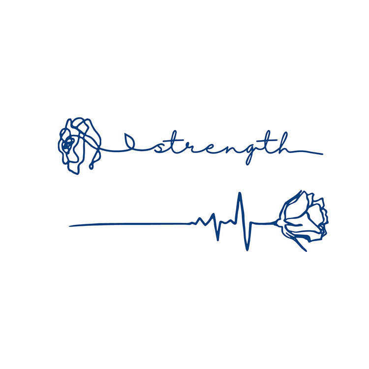 De Soft Strength Duo tattoos zijn speciaal ontworpen voor mensen die weten dat kracht niet schreeuwt, maar juist in stilte spreekt. Deze set bestaat uit twee ontwerpen met het woord strength, elk subtiel verwerkt in een grafisch lijnenspel van bloem en hartslag.