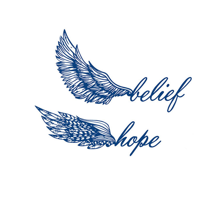 Twee sierlijke tijdelijke tattoos met de woorden belief en hope, beide prachtig verwerkt in een elegant vleugelontwerp. Deze tattoo’s symboliseren innerlijke kracht, vertrouwen en optimisme. Ideaal voor op schouderblad, onderarm of sleutelbeen. Blijft 10 tot 14 dagen zitten. Een subtiele reminder dat je altijd mag blijven geloven én hopen.